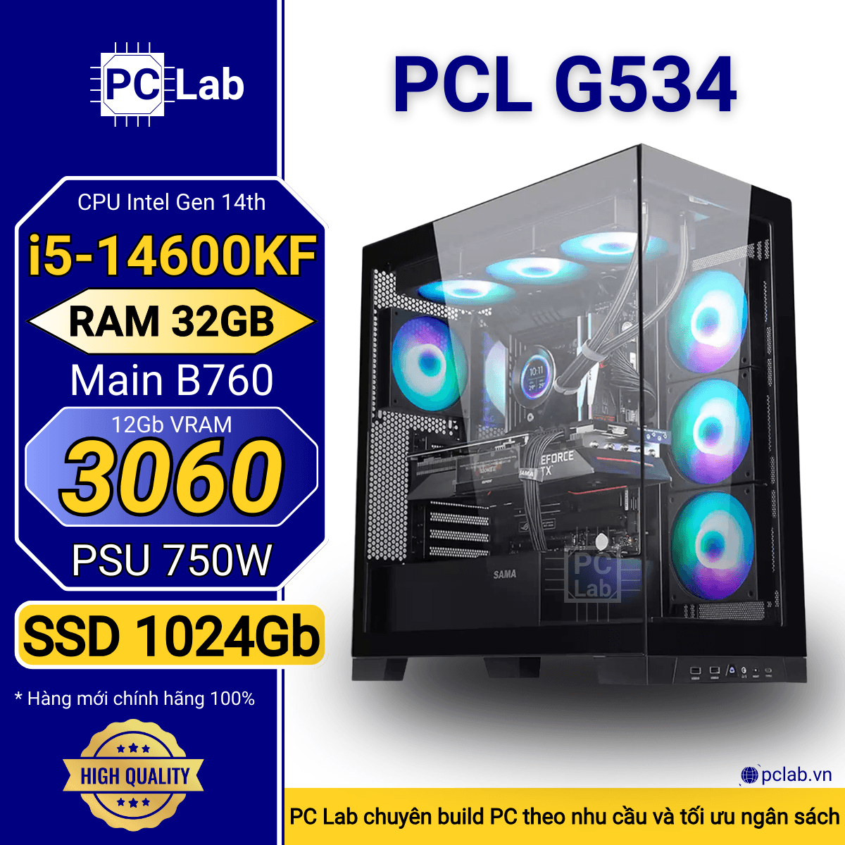 PC Gaming PCL G534 (Intel Core i5-14600KF, RAM 32GB, RTX3060 12Gb)