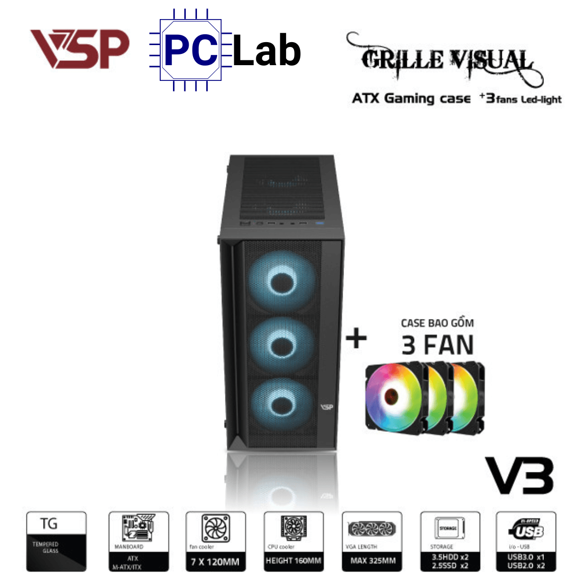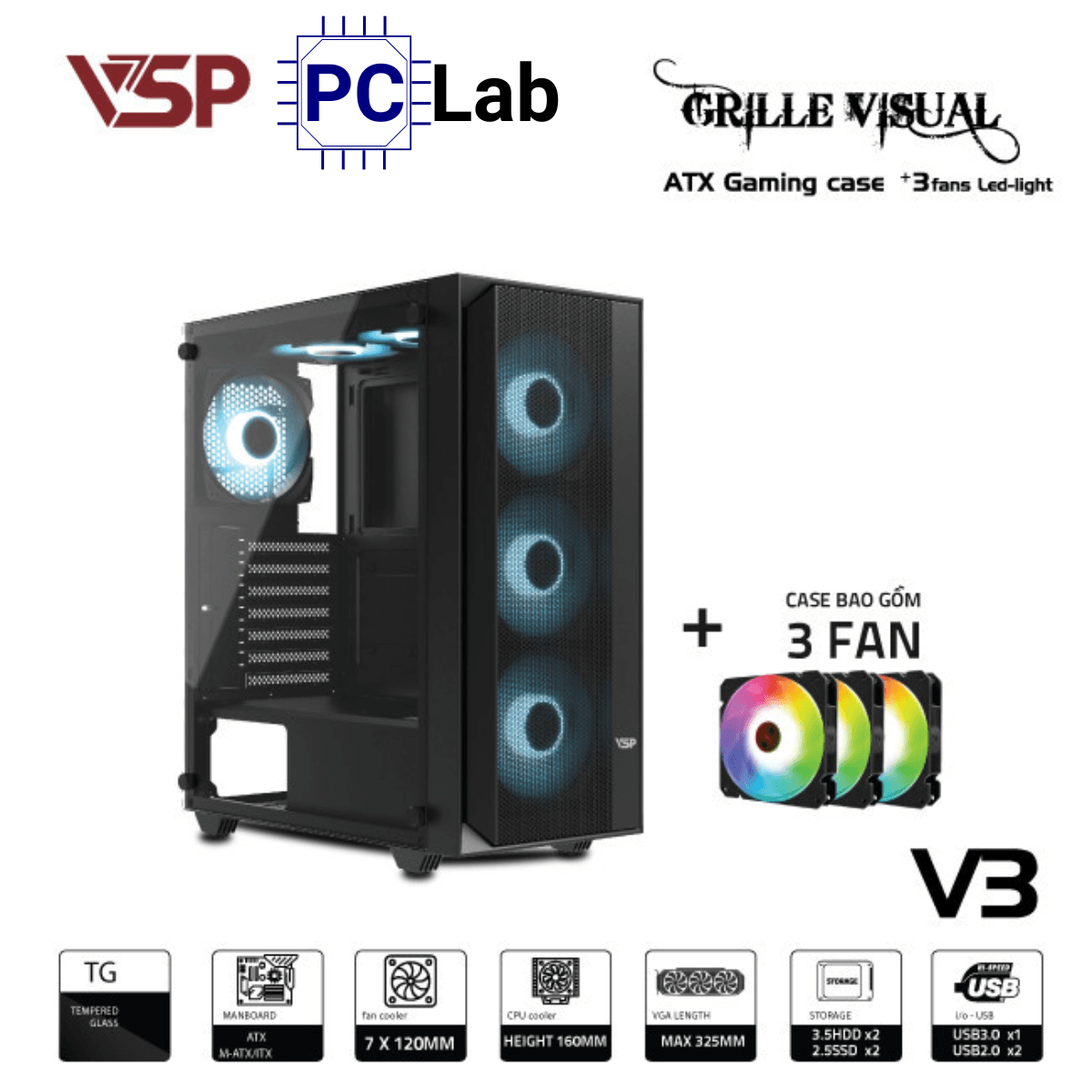Thông số kỹ thuật vỏ case PC máy tính VSP V3